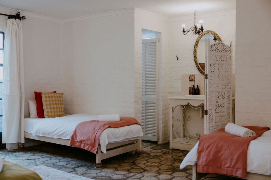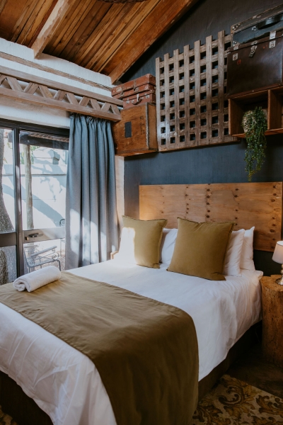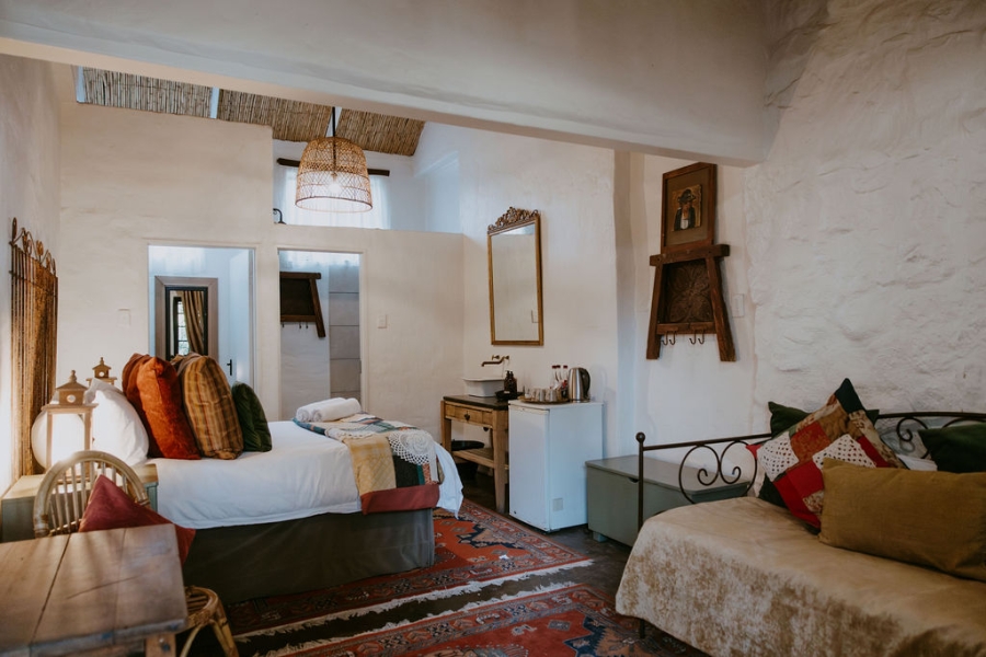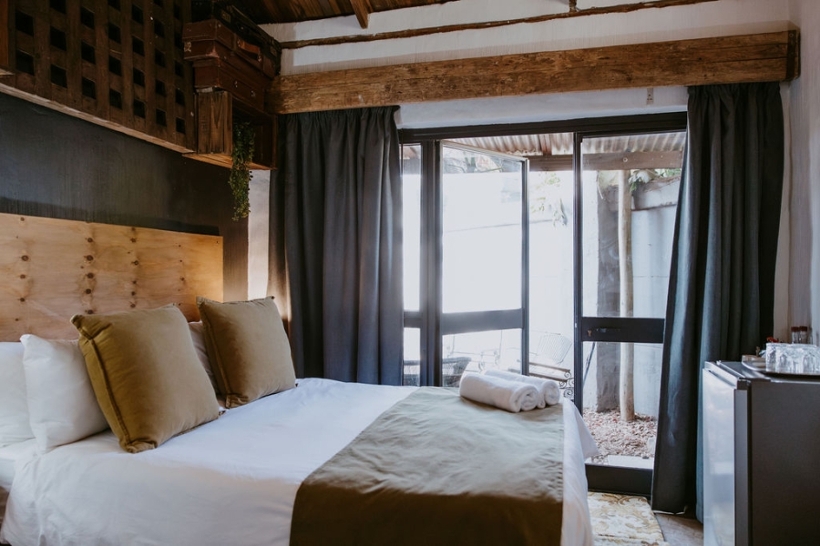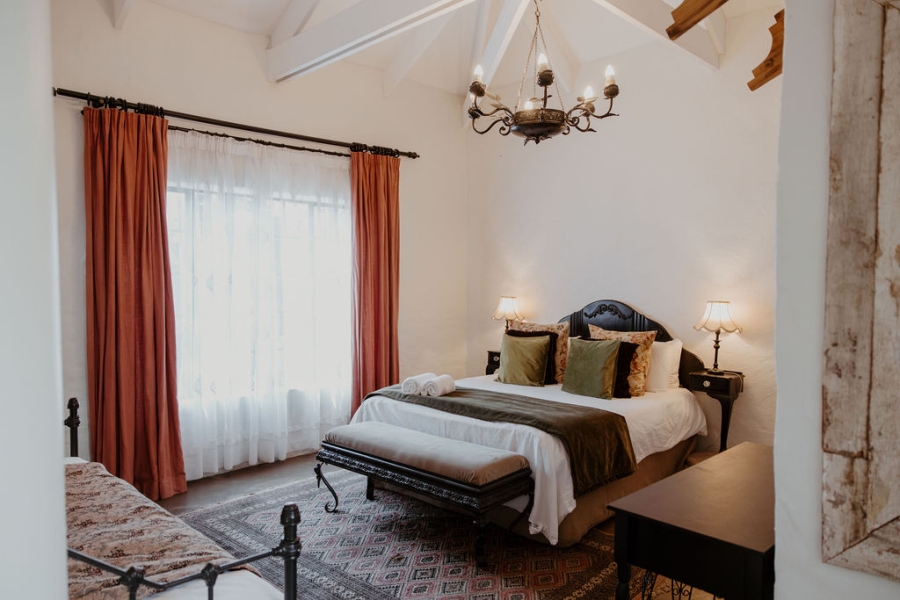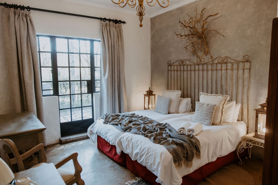 This room features a double bed and an extra daybed to accommodate a third guest (R250.00 additional charge), complemented by a comfortable workstation. Refresh in the modern shower and relish exclusive access to a delightful courtyard, elegantly furnished with classic French pieces.