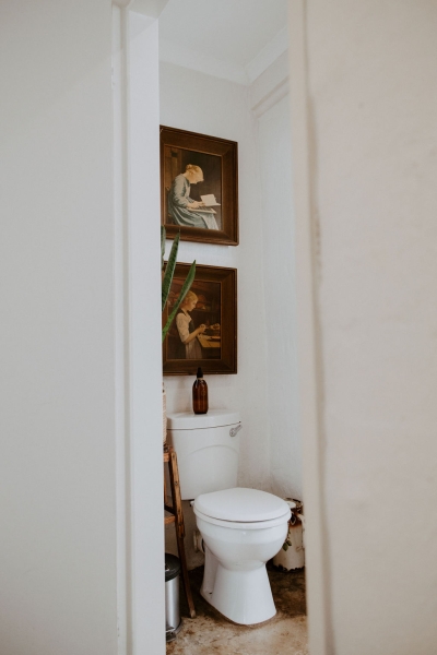 This room boasts an exterior door leading to a private patio, where you'll find a charming French garden bench. Inside, it features a double bed, a workstation, a comfortable reading chair, and a private shower for your convenience.